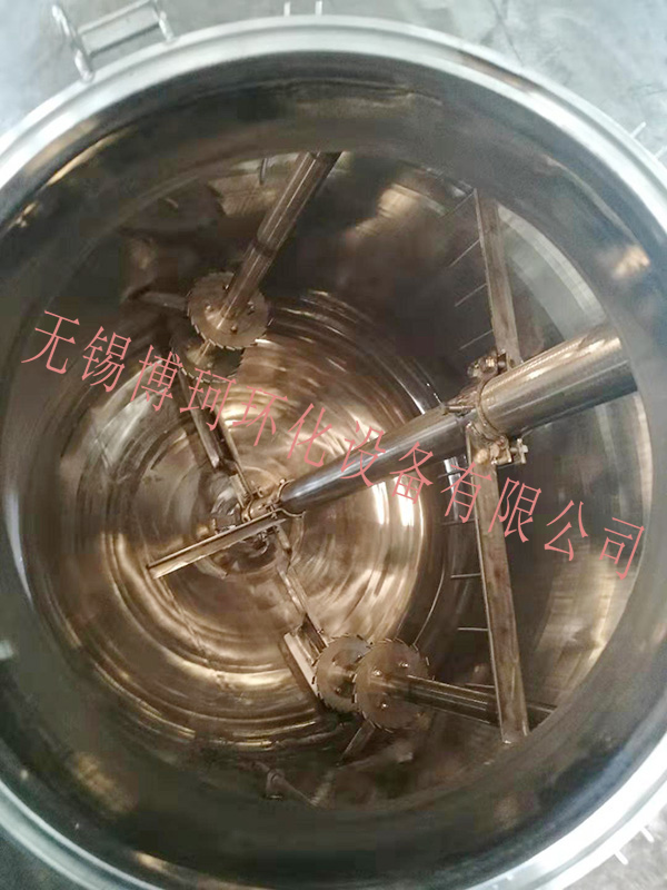 攪拌分散釜由鍋體、鍋蓋、攪拌器、電加熱油夾管、支承及傳動裝置、軸封裝置、溢油槽等組成,并配有電加熱棒及測溫、測壓表。由于用戶因生產工藝、操作條件不盡相同,攪拌形成一般有錨式、漿式、渦輪式、推進式或框式。支承座有懸掛或支承式二種。夾套內放置導熱油,由電熱棒加熱,夾套上開有進、排油、溢測量、放空及電熱棒、測溫等接管孔。夾套外壁焊接支座,鍋體下部開有放料口。